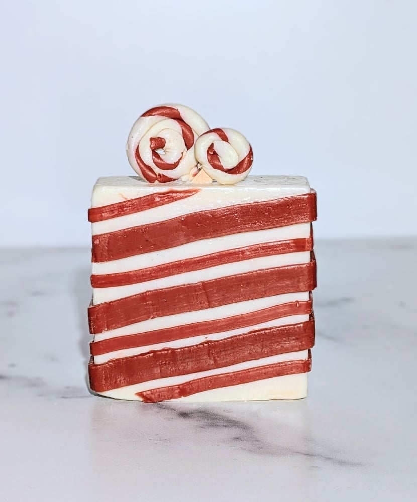 Step into the festive spirit with our Candy Cane Lane soap! This isn't just a soap; it's a piece of holiday magic for your bathroom. Handcrafted to perfectly resemble a classic, swirling candy cane, this bar is as delightful to look at as it is to use.